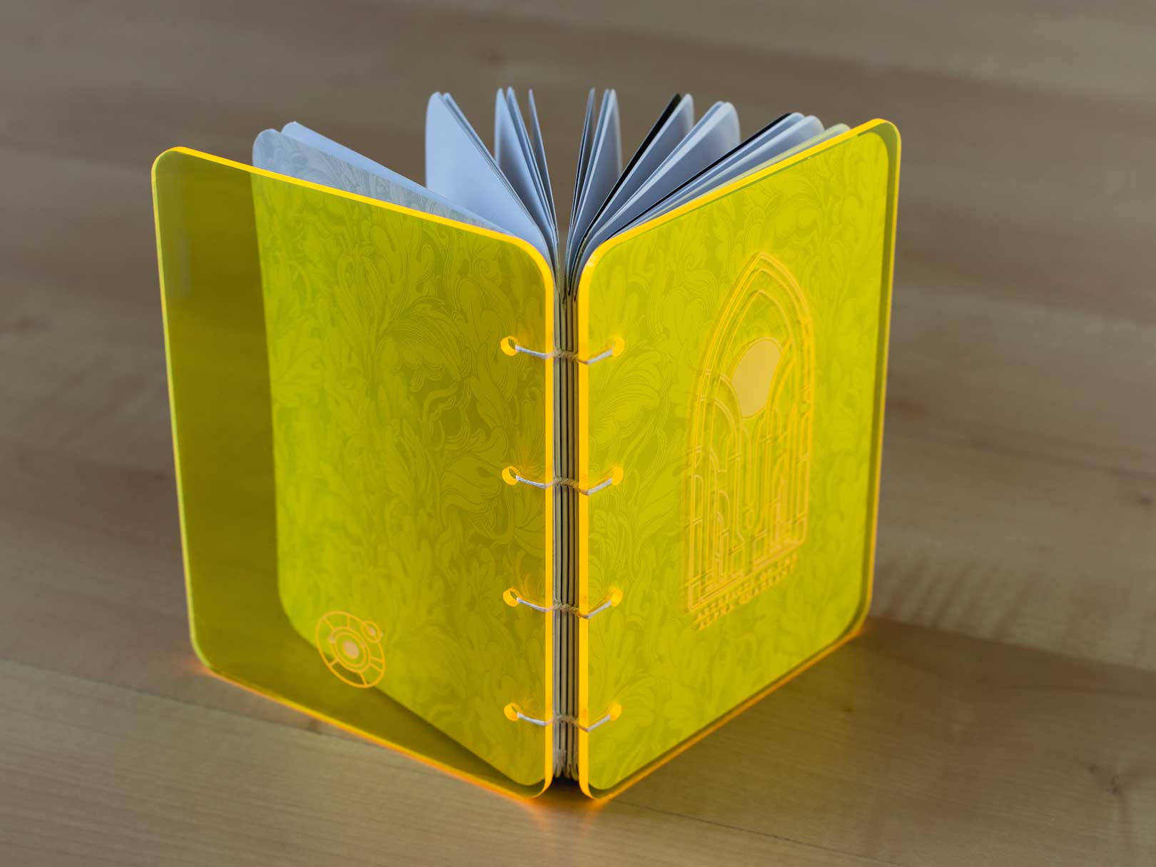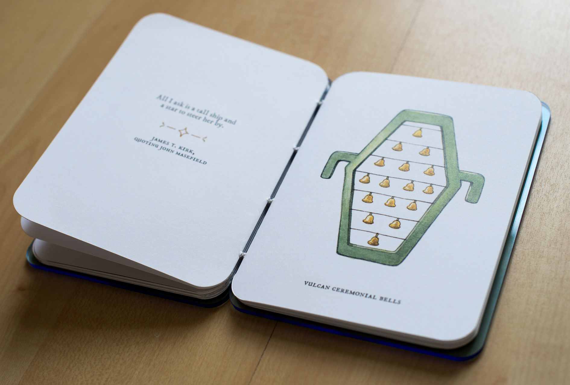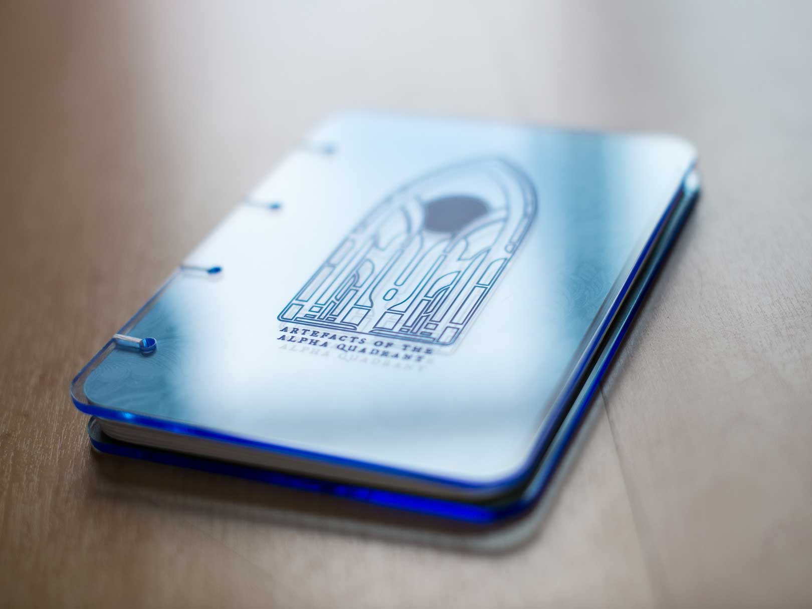 An illustrated hand-bound book, created as a love letter to that star-flung series. Laser cut acrylic covers, with coptic stitch binding.