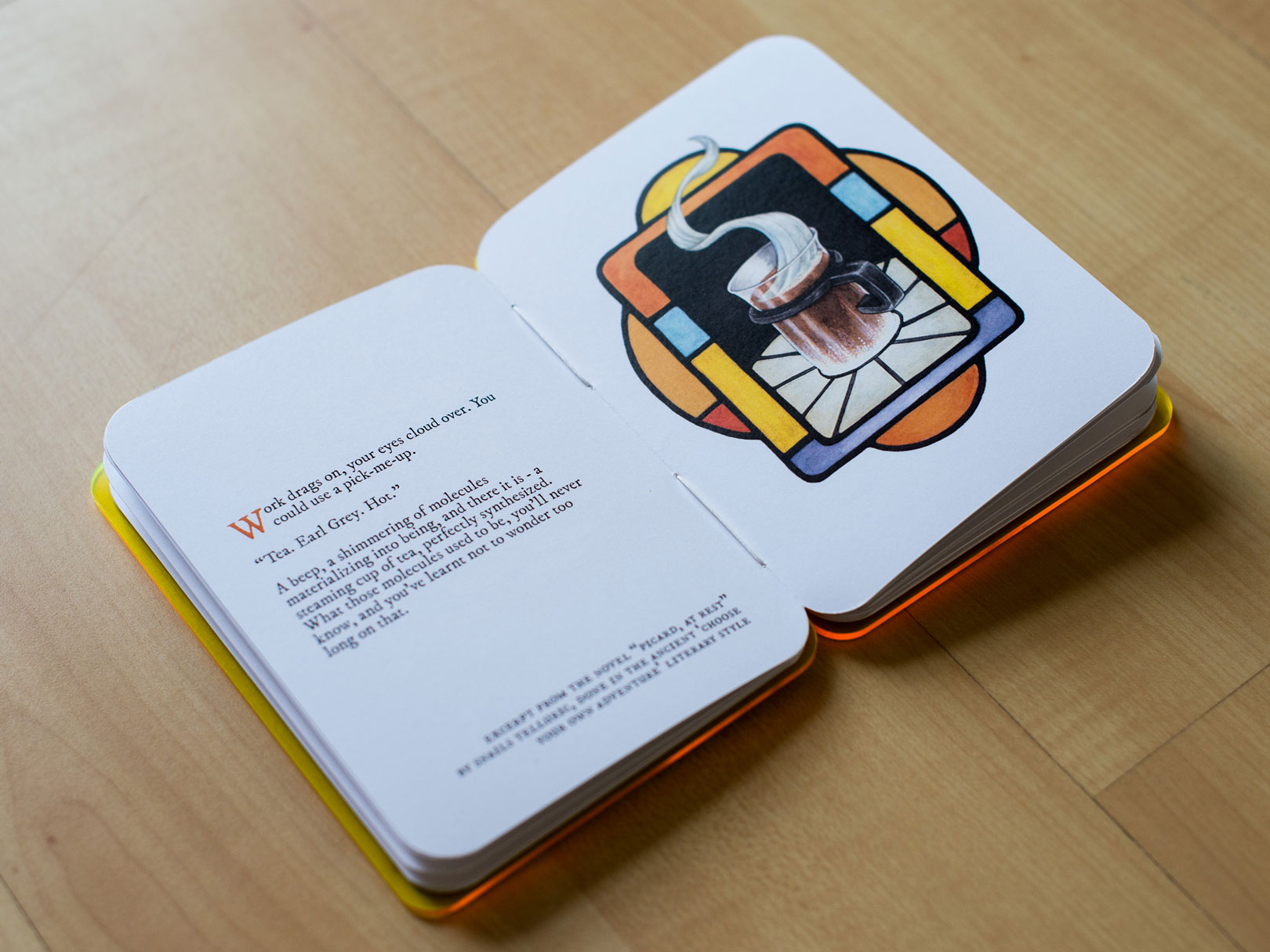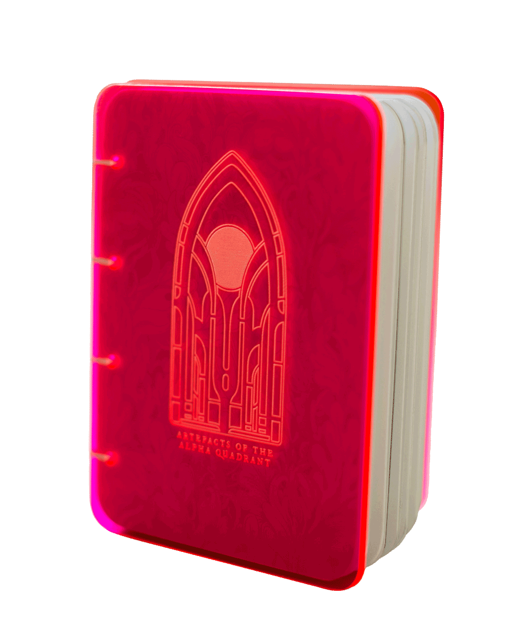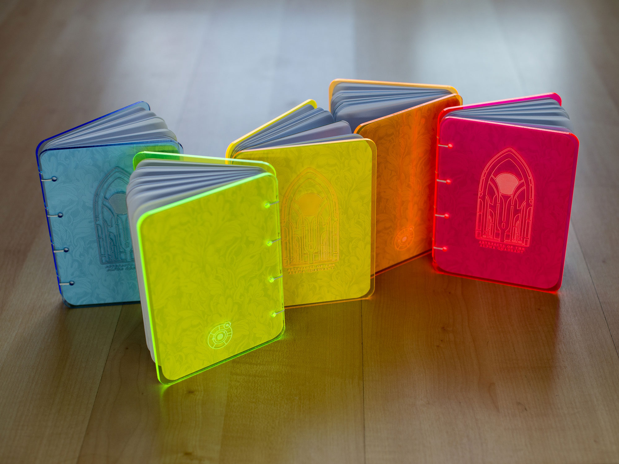 An illustrated hand-bound book, created as a love letter to that star-flung series. Laser cut acrylic covers, with coptic stitch binding.